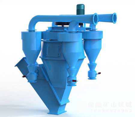 1、將物料“一分為三”,即“粗粉(d>200um)、中粗粉(d>325um)細粉(d>400um以上)。一級選粉分離出混合粉中的粗顆粒,二級精確選粉在導向葉片與垂直型轉籠所構成的環形空間完成,因此分級精度特高,分選效率更高。